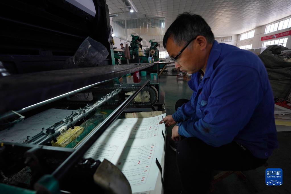 4月25日,河北南宮華寶古籍印刷有限公司工人在印刷線(xiàn)裝書(shū)。