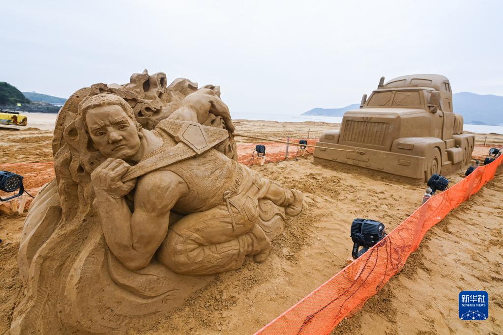近日,第二十四屆舟山國際沙雕節在浙江省舟山市朱家尖南沙景區舉行。本屆沙雕節以“動(dòng)感亞運”為主題,展出了50多件沙雕作品,吸引游客前來(lái)參觀(guān)游玩。