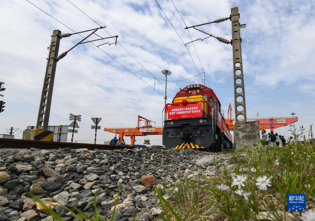 4月26日,“法國郵政DPD號”國際班列從成都國際鐵路港駛出。