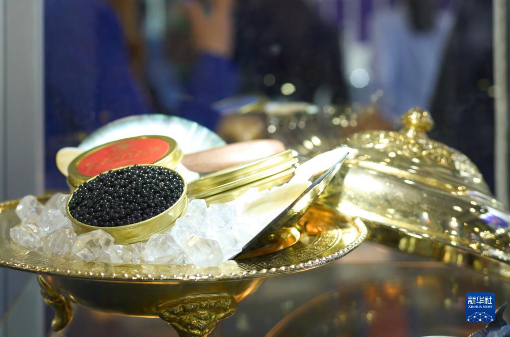 這是4月25日在西班牙巴塞羅那舉行的全球水產(chǎn)品博覽會(huì )上拍攝的魚(yú)子醬。