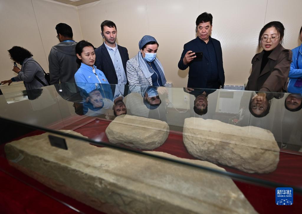4月26日,外賓在陜西石峁遺址文物醫院展廳參觀(guān)調研。