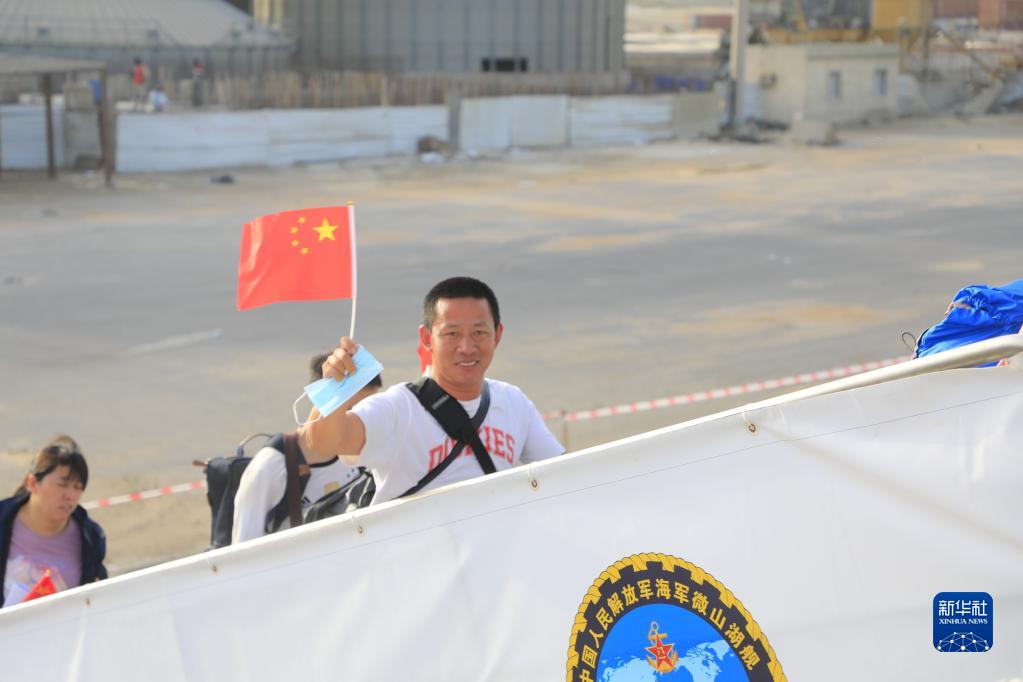 當地時(shí)間4月26日,中國海軍導彈驅逐艦南寧艦、綜合補給艦微山湖艦緊急駛赴蘇丹,執行撤離我在蘇丹人員任務(wù)。這是撤離人員登上微山湖艦。
