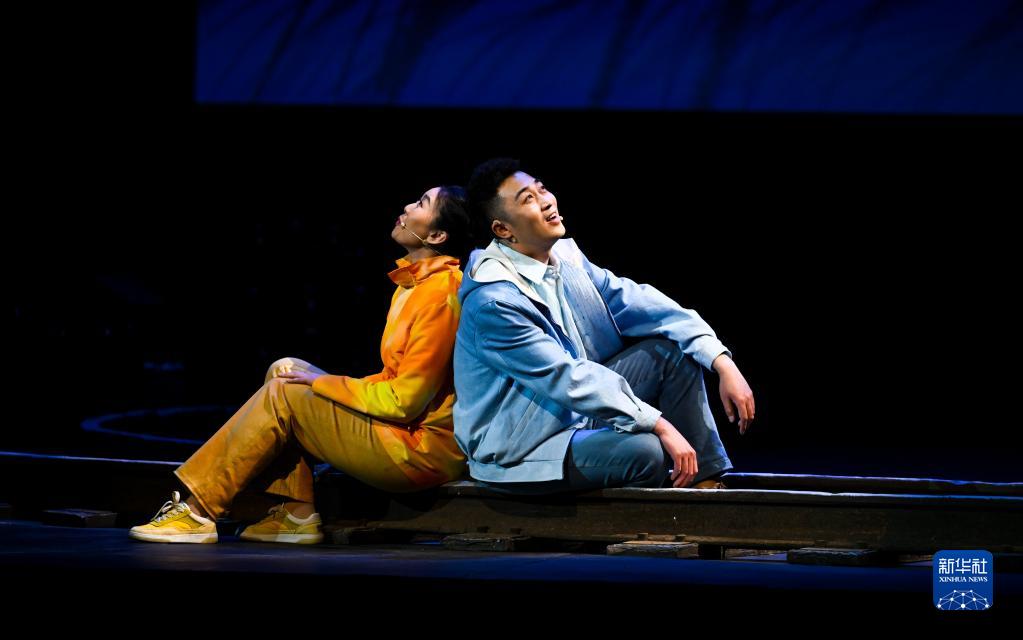 4月27日,演員在話(huà)劇《天邊的草原》中表演。