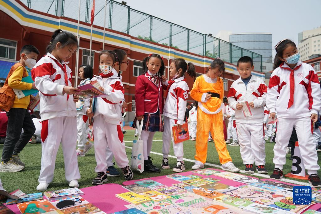 當日,位于北京市海淀區的人大附中實(shí)驗小學(xué)舉辦校園讀書(shū)節活動(dòng)。本次讀書(shū)節的主題為“閱讀傳承經(jīng)典 創(chuàng )作點(diǎn)亮未來(lái)”,活動(dòng)現場(chǎng)各班級設置“流動(dòng)書(shū)角”,讓學(xué)生交換圖書(shū),豐富閱讀選擇。與此同時(shí),活動(dòng)通過(guò)引導學(xué)生讀繪本、童話(huà)故事及經(jīng)典名著(zhù),將讀書(shū)所得用朗誦、戲劇表演等形式展示,激發(fā)學(xué)生的閱讀興趣。