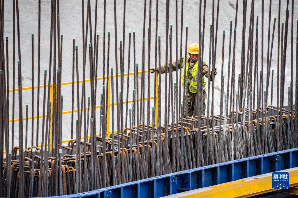4月28日,工人在成達萬(wàn)高速鐵路建設現場(chǎng)作業(yè)。