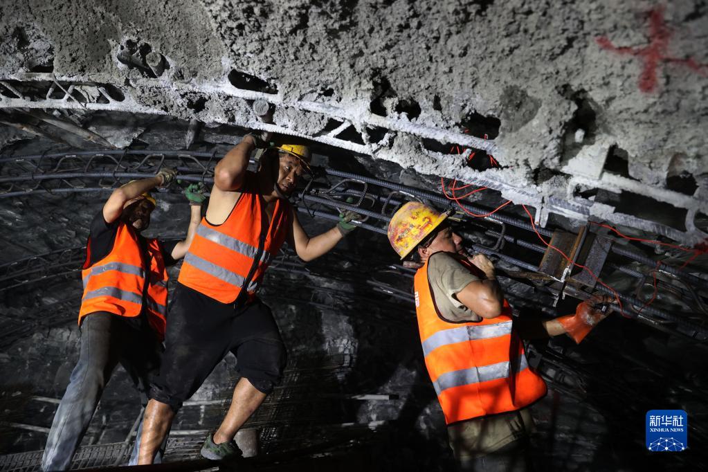 4月29日,中鐵八局工人在渝湘高鐵重慶黔江段姚家院子隧道施工。