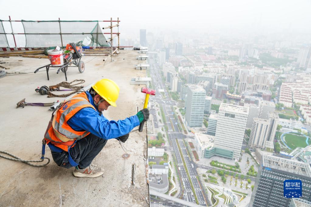 4月29日,工人在位于上海的中建三局一公司華東公司某建設工地施工。