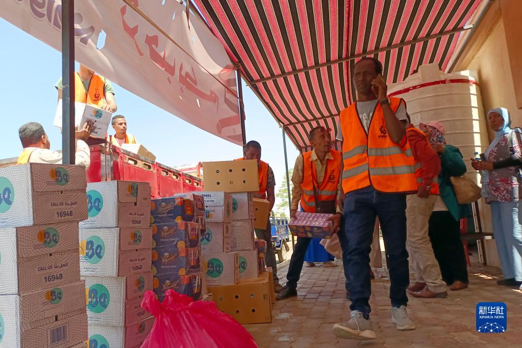5月2日,在埃及南部阿斯旺省,工作人員為逃離蘇丹進(jìn)入埃及的難民準備物資(手機拍攝)。