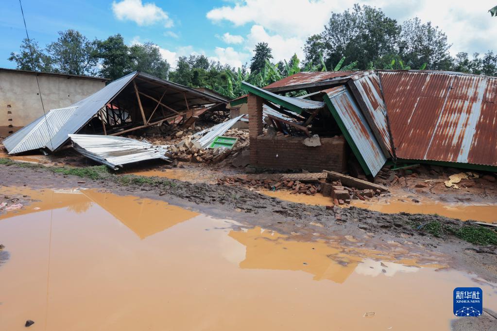 這是5月4日在盧旺達西方省拍攝的在強降雨和洪水中受損的房屋。