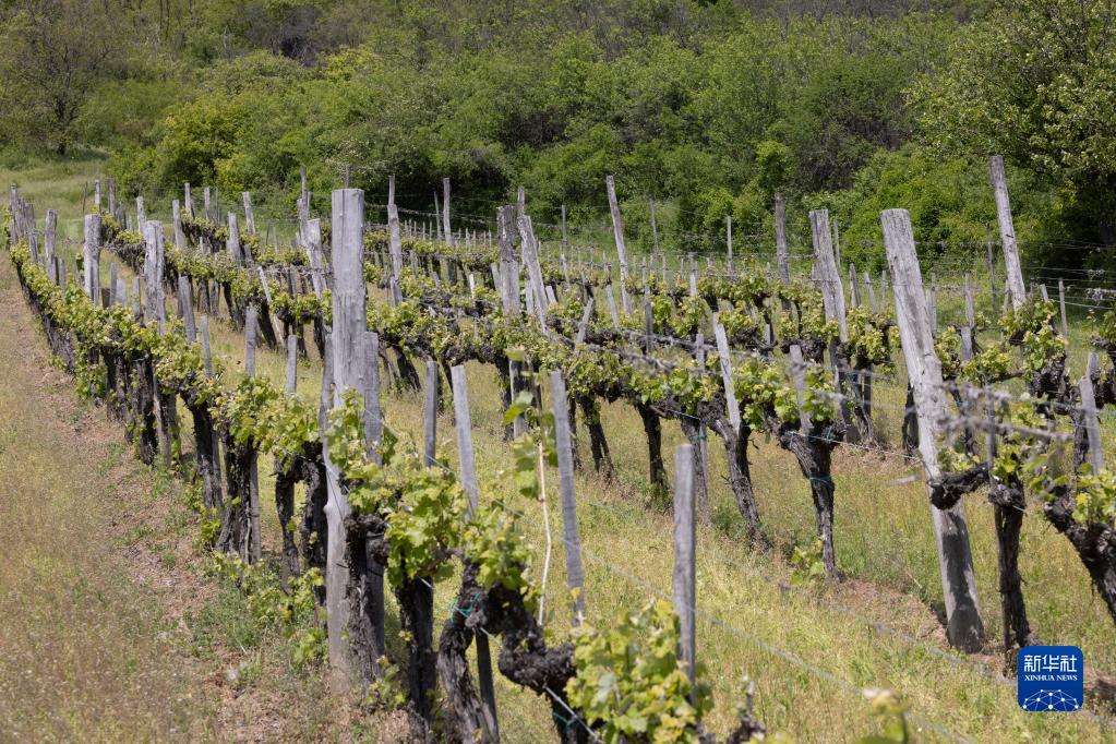 這是5月11日在匈牙利托卡伊拍攝的鮑比茨酒莊的葡萄園。