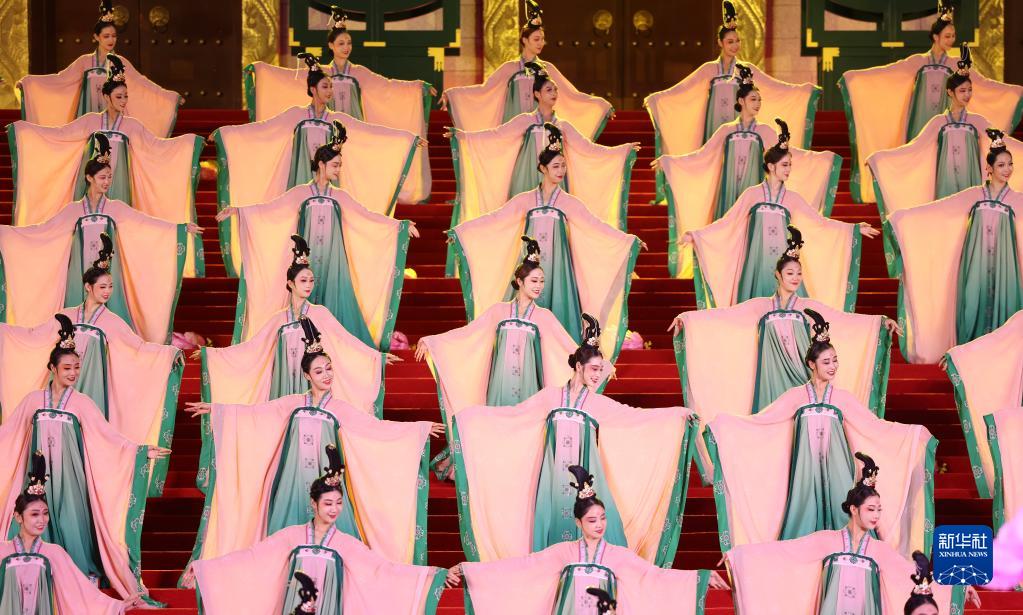 5月18日晚,出席中國-中亞峰會(huì )的中亞國家元首夫婦陸續抵達陜西省西安市大唐芙蓉園,參加在這里舉行的歡迎儀式。這是演員在歡迎儀式上表演。新華社記者 丁海濤 攝
