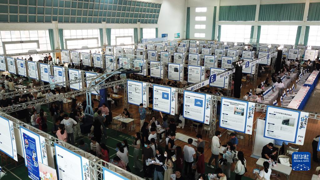 這是5月19日在中南林業(yè)科技大學(xué)涉外學(xué)院拍攝的招聘會(huì )現場(chǎng)(無(wú)人機照片)。