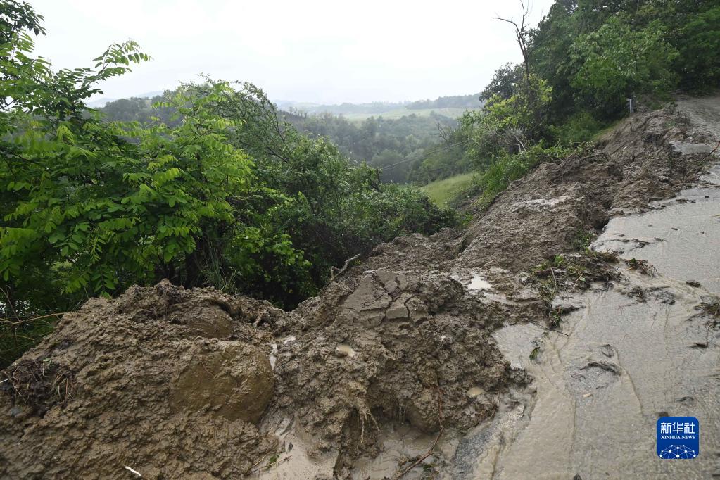 這是5月19日在意大利北部艾米利亞-羅馬涅大區博洛尼亞拍攝的山體滑坡現場(chǎng)。