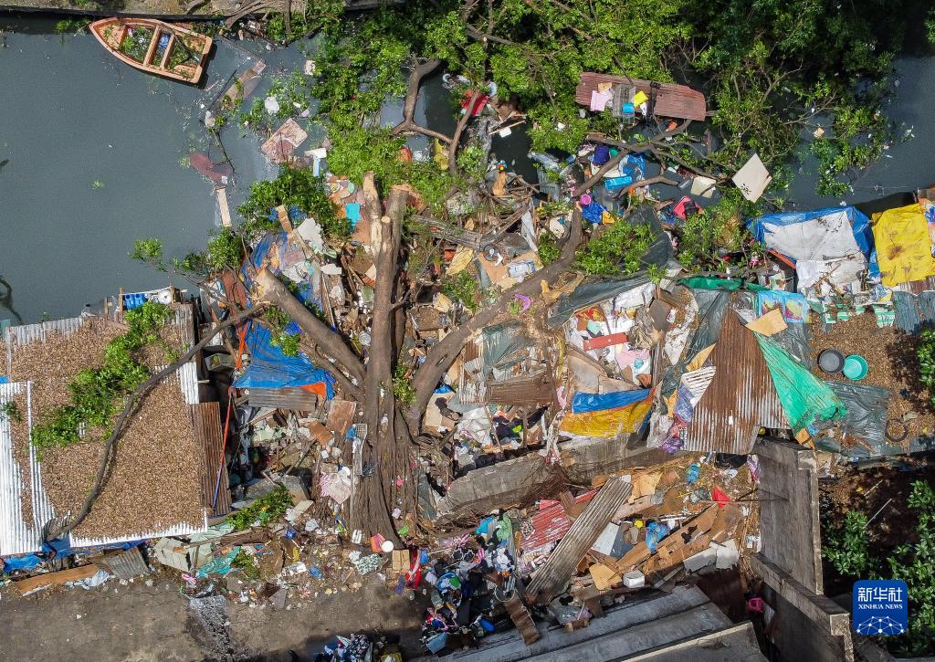 這是5月18日在菲律賓馬尼拉拍攝的大樹(shù)倒塌現場(chǎng)(無(wú)人機照片)。