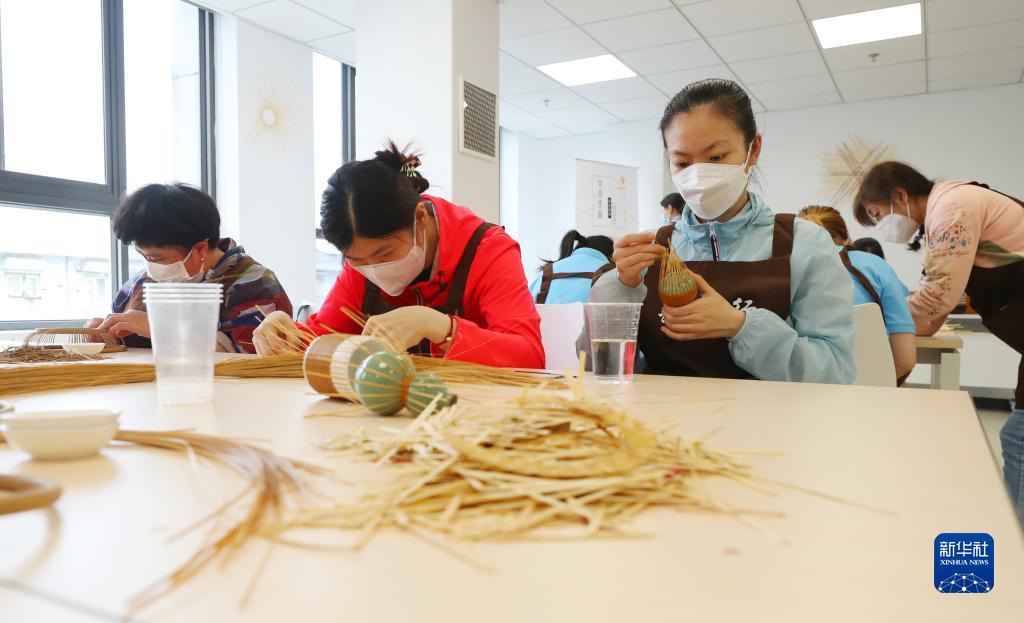 5月20日,上海藝助行公益促進(jìn)中心的學(xué)員在“陽(yáng)光201”平臺進(jìn)行竹編工藝品制作展示。