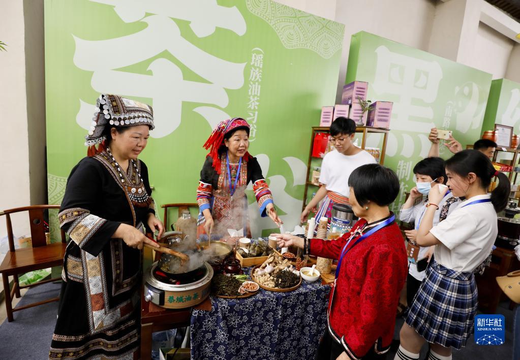 5月21日,在茶文化非遺項目展示交流活動(dòng)上,參觀(guān)者品嘗瑤族油茶。