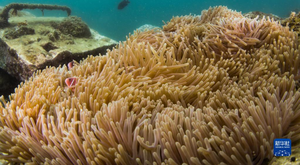 這是在蜈支洲島海域海洋牧場(chǎng)拍攝的小丑魚(yú)和???月18日攝)。
