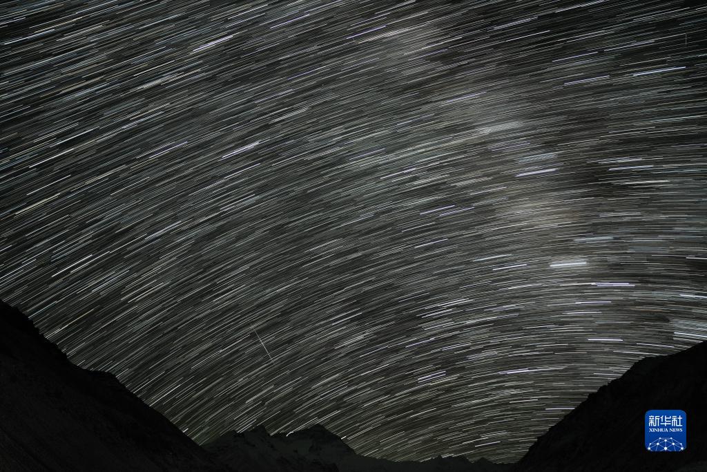 這是5月23日在珠峰大本營(yíng)拍攝的星軌(合成照片)。