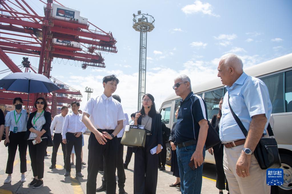 5月25日,中亞五國媒體機構代表在寧波舟山港參訪(fǎng)。5月24日至26日,來(lái)自中亞五國的媒體機構代表在出席中國—中亞通訊社論壇后,來(lái)到浙江參訪(fǎng)。新華社記者 江漢 攝