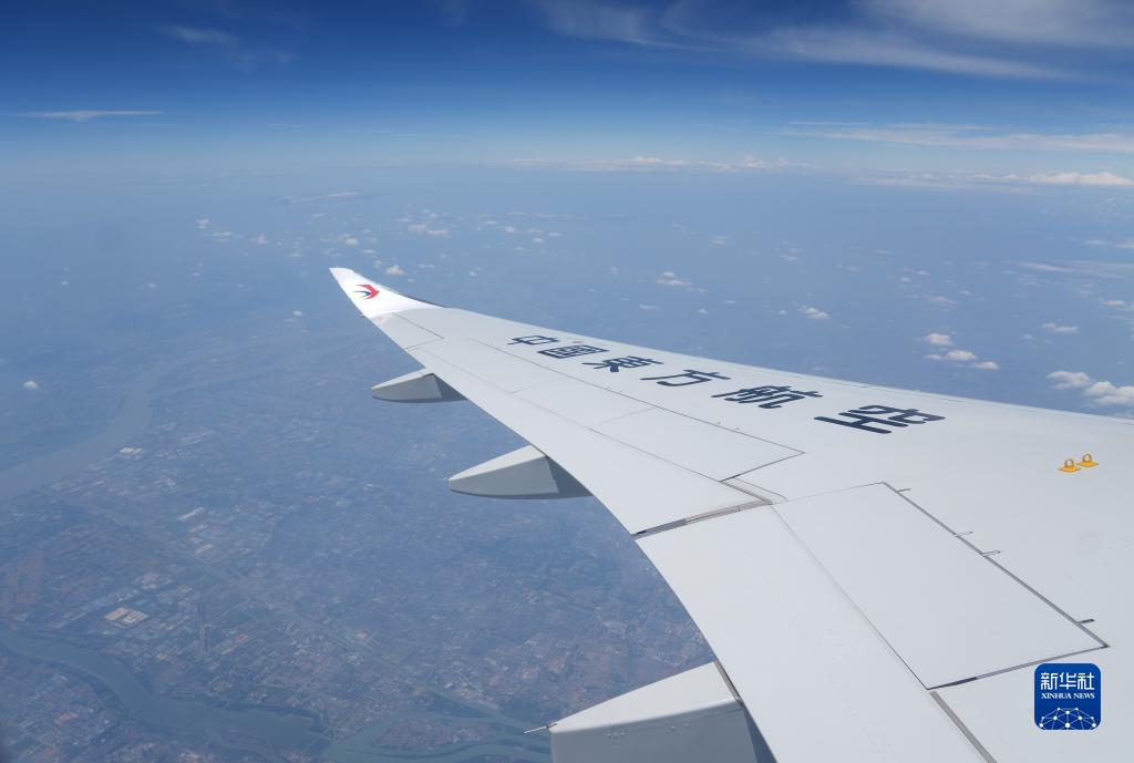 5月28日,C919首個(gè)商業(yè)航班東航MU9191在空中飛行。