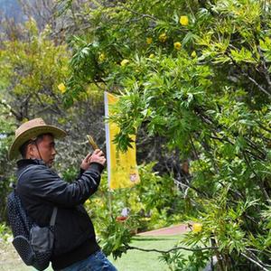 5月28日,一名游客在南伊珞巴民族鄉扎貢溝拍攝野生大花黃牡丹。