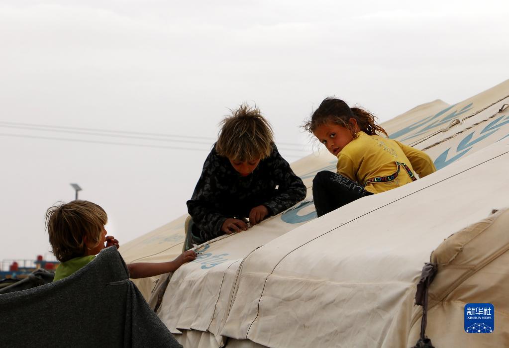 這是5月28日在敘利亞哈塞克省拍攝的霍爾難民營(yíng)內的孩子們。