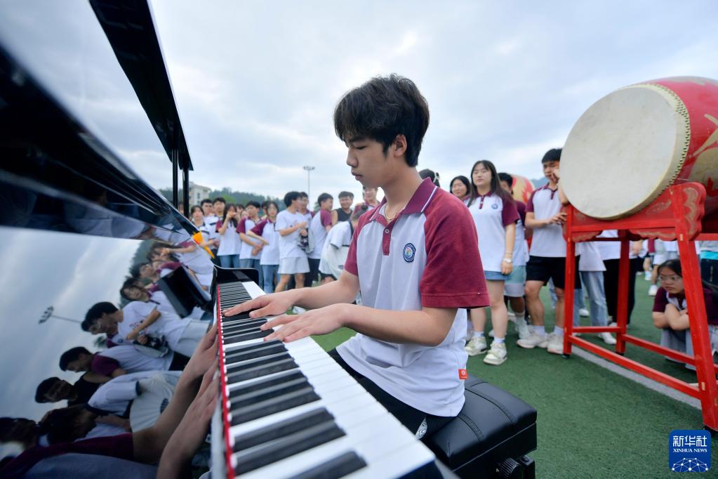 5月29日,在湖北省宣恩縣第一高級中學(xué)的快閃活動(dòng)現場(chǎng),學(xué)生在彈奏鋼琴。