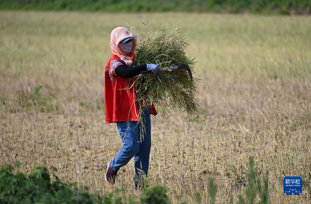 當日,天津市北辰區大張莊鎮田莊村的1100畝油菜田,開(kāi)始集中收割菜籽。聯(lián)合收割機將在三天內完成采收,為下一輪種植高粱留出時(shí)間。