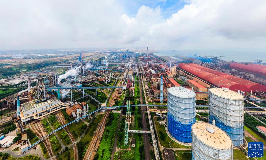 廣東省湛江市東海島拍攝的寶鋼湛江鋼鐵廠(chǎng)區(5月25日攝,無(wú)人機照片)。聚集了寶鋼湛江鋼鐵、中科煉化和巴斯夫項目及一批上下游產(chǎn)業(yè)的湛江東海島,正迅速崛起綠色鋼鐵和綠色石化兩大千億級臨港工業(yè)集群,成為廣東最大的臨港工業(yè)島。