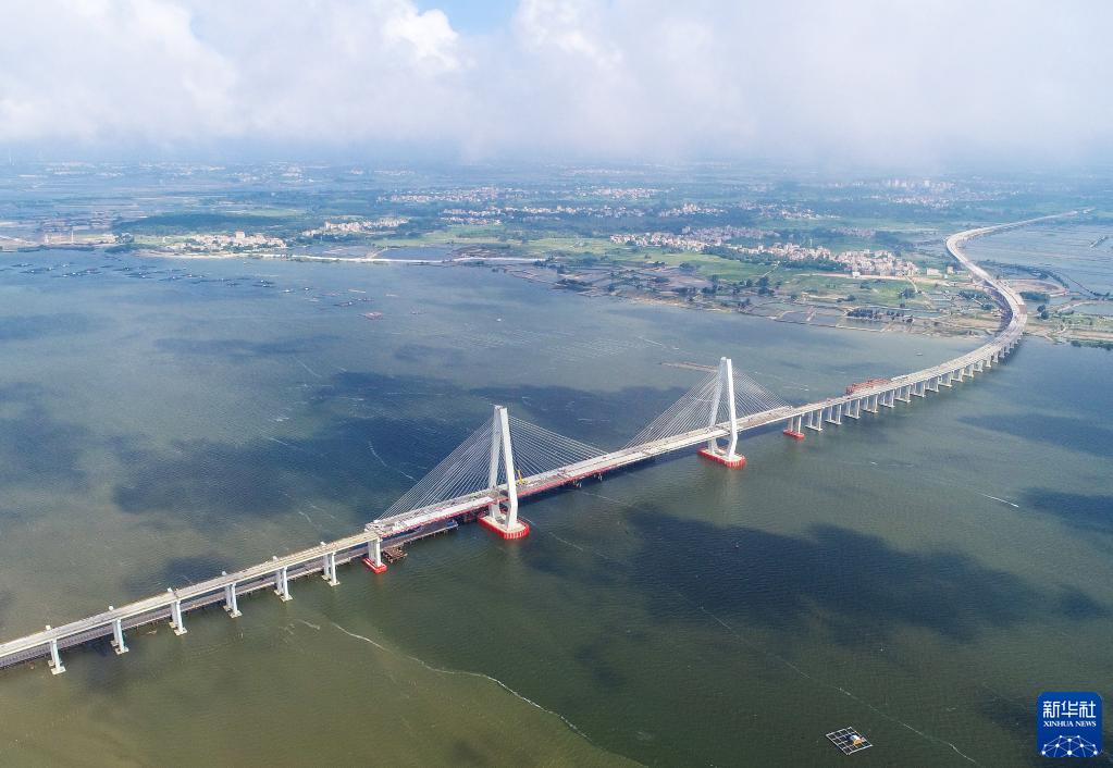 建設中的湛江鷺洲大橋(5月25日攝,無(wú)人機照片)。