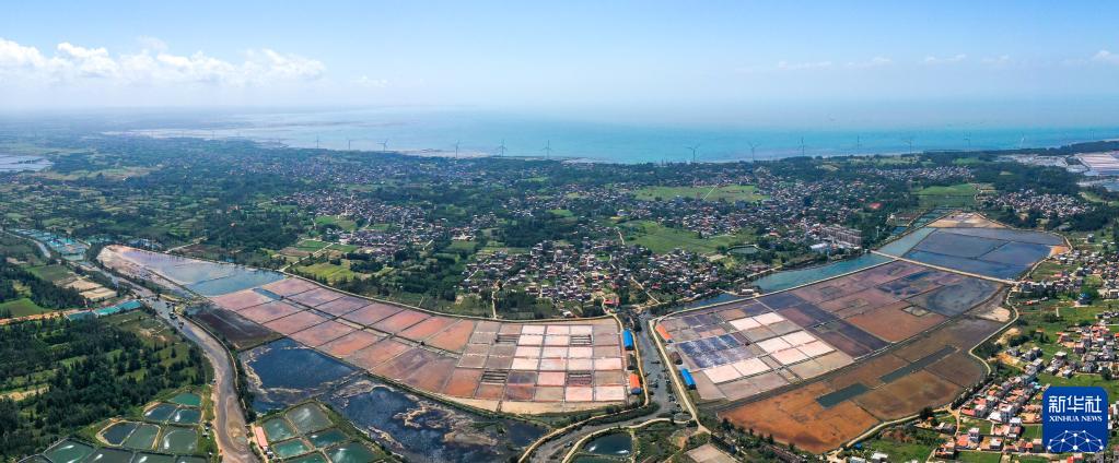 中國大陸最南端“南極村”的鹽田(5月28日攝,無(wú)人機全景照片)。