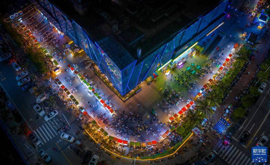 湛江市廣州灣大道附近的夜市(5月25日攝,無(wú)人機照片)。