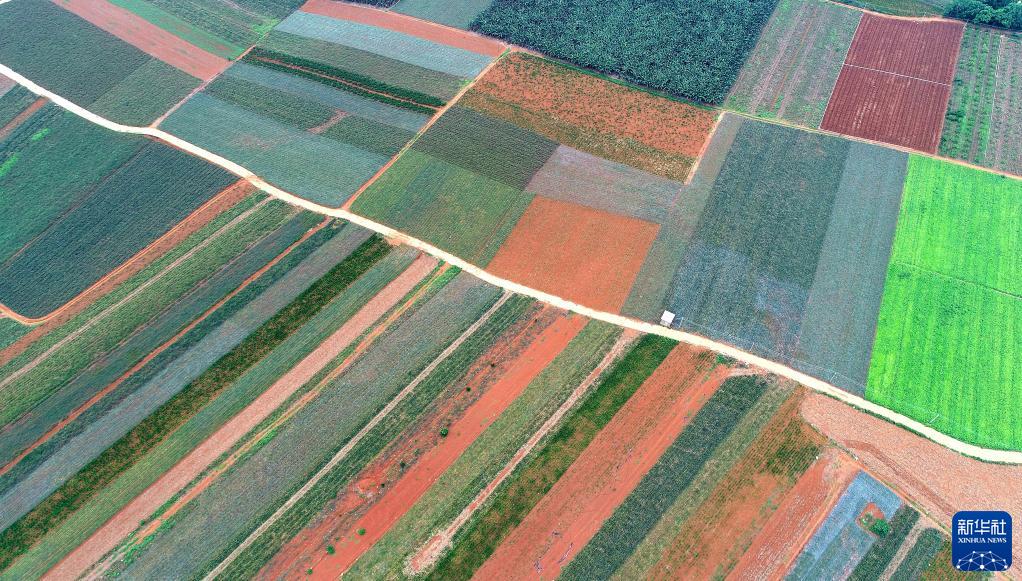 湛江市徐聞縣曲界鎮以菠蘿為主的多種作物農田(5月26日攝,無(wú)人機照片)。