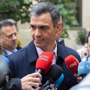 這是5月28日西班牙首相桑切斯在馬德里參加選舉活動(dòng)時(shí)接受采訪(fǎng)。