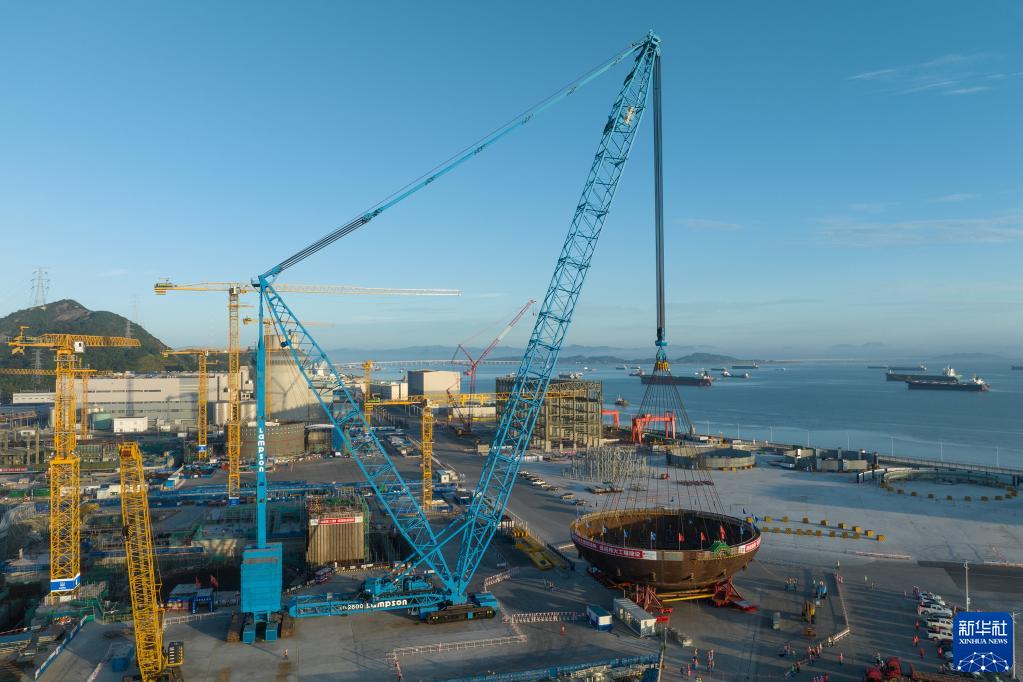 浙江三門(mén)核電二期工程4號機組核島鋼制安全殼底封頭吊裝就位
