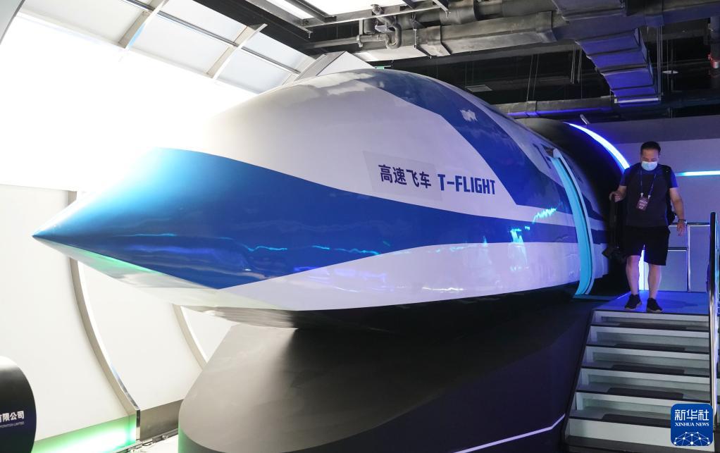 5月30日在科幻產(chǎn)業(yè)新技術(shù)新產(chǎn)品展現場(chǎng)拍攝的“高速飛車(chē)”。