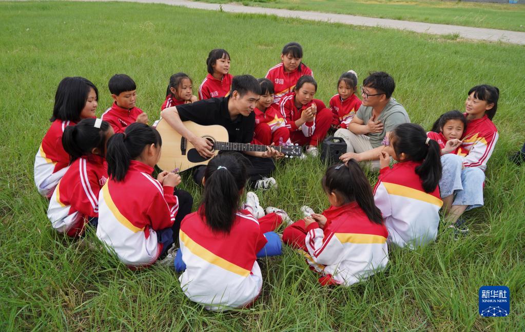 5月29日,在安達市任民鎮中心小學(xué),音樂(lè )班的孩子們和老師一起練習唱歌。