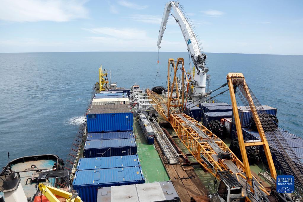 5月30日,聯(lián)合國工程船抵達也門(mén)紅海港口荷臺達附近海域。