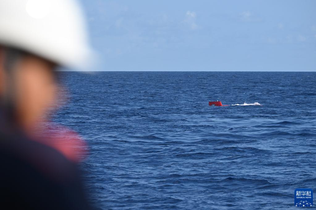 “深海勇士”號載人潛水器即將下潛開(kāi)始當日的水下調查(5月27日攝)。