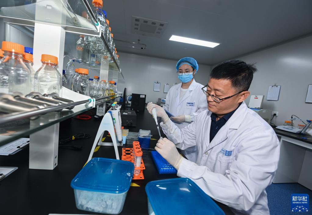 5月31日,在位于嘉興南湖高新區內的嘉興允英醫學(xué)檢驗有限公司實(shí)驗室內,張道允博士(右)正在帶領(lǐng)工作人員一起做實(shí)驗。張道允曾經(jīng)先后就讀于中科院以及美國約翰·霍普金斯大學(xué)醫學(xué)院,是腫瘤生物學(xué)研究領(lǐng)域的專(zhuān)家。