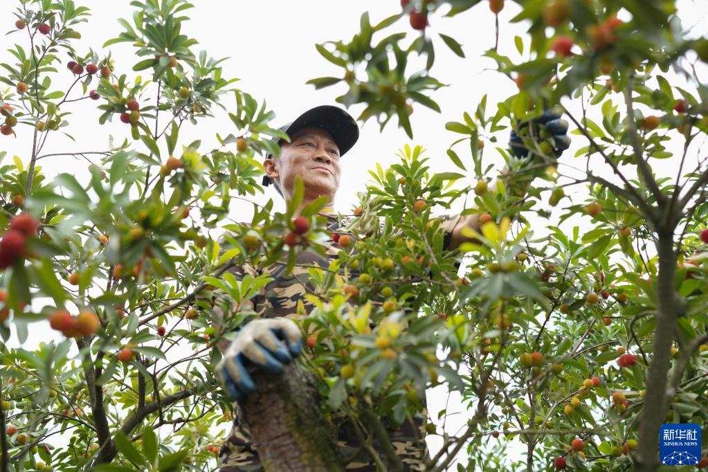 6月1日,在余姚市三七市鎮石步村,果農對露地楊梅進(jìn)行疏果,以提高熟果品質(zhì)。