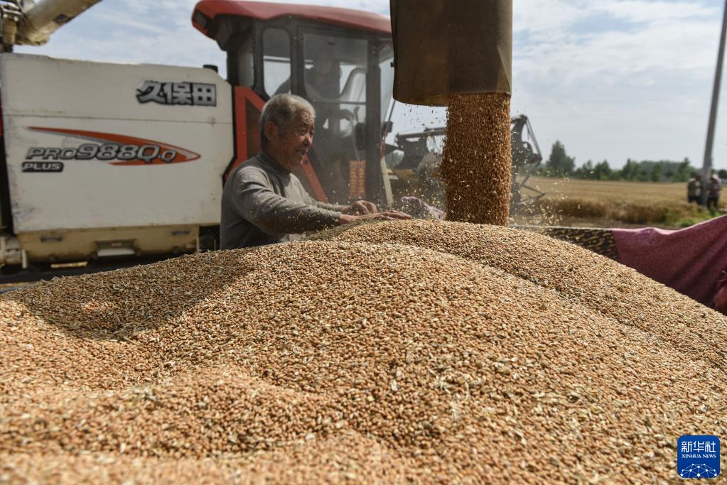 6月2日,村民在安徽省阜陽(yáng)市臨泉縣呂寨鎮楊莊村麥田里收獲小麥。