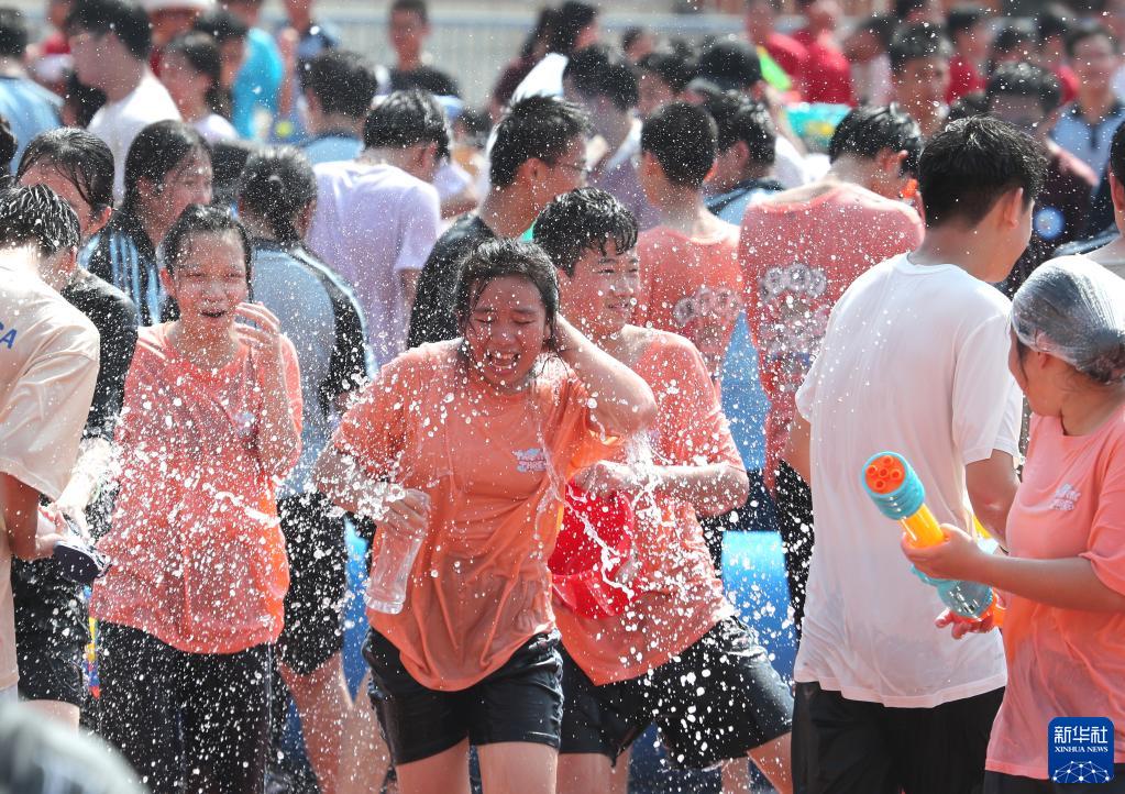 6月2日,學(xué)生們享受潑水活動(dòng)帶來(lái)的快樂(lè )。
