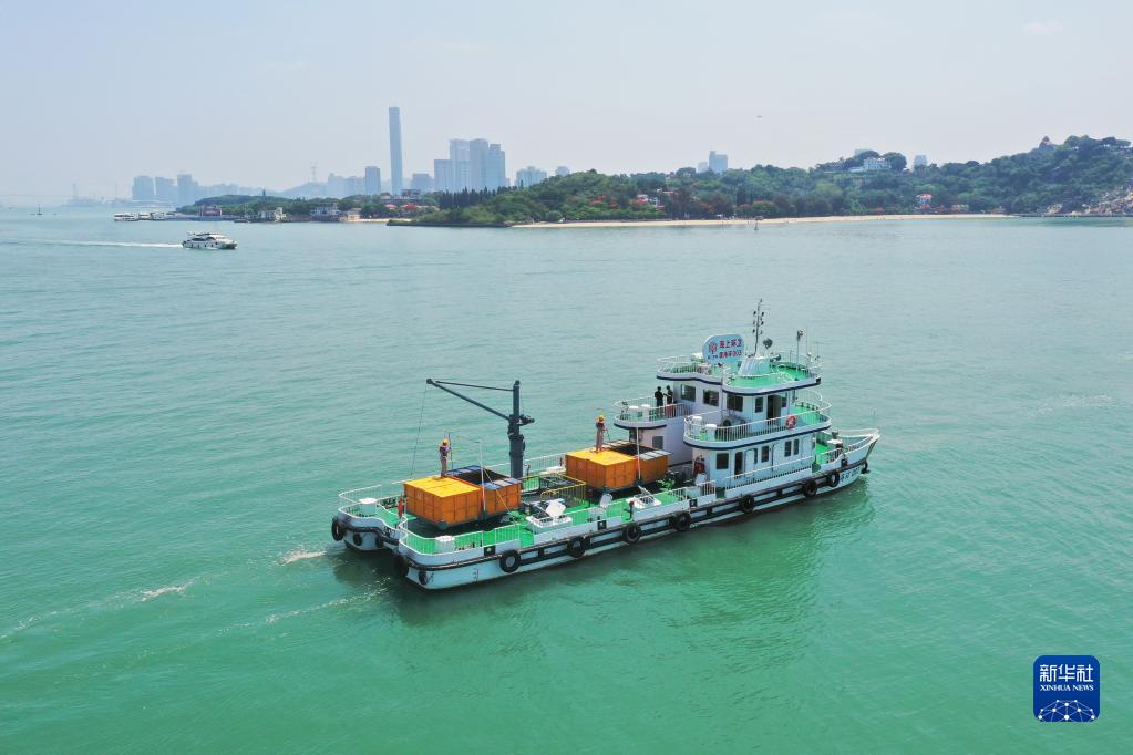 廈門(mén)海上環(huán)衛站“廈海環(huán)003號”海上環(huán)衛船行駛在廈鼓海域(6月4日攝,無(wú)人機照片)。