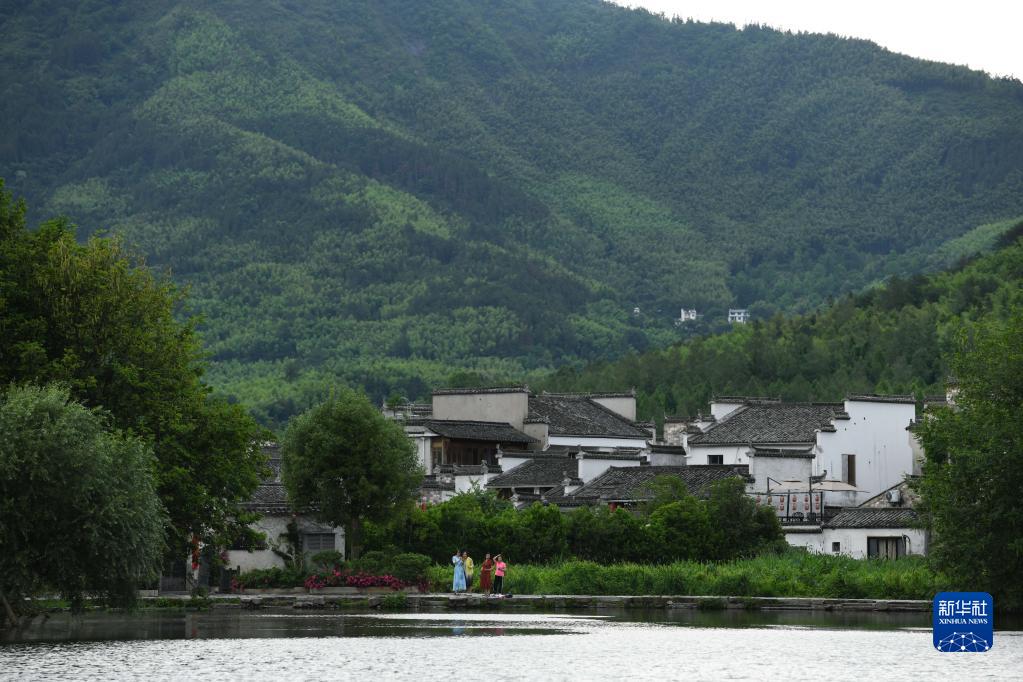 5月31日,游客在安徽省黃山市宏村游玩。