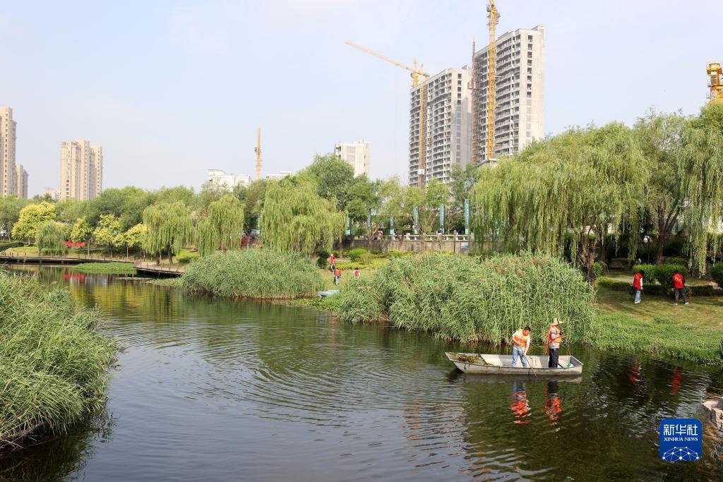 6月5日,環(huán)保志愿者在山東省棗莊市西沙河沿岸和河道清理垃圾雜物。