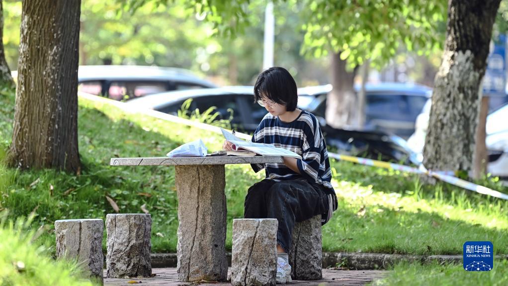 6月6日,在廣西欽州市第二中學(xué)校園內,一名考生在備考。