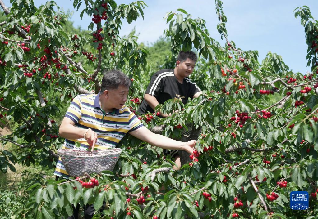 6月6日,游客在秦皇島市海港區杜莊鎮一果園采摘櫻桃。