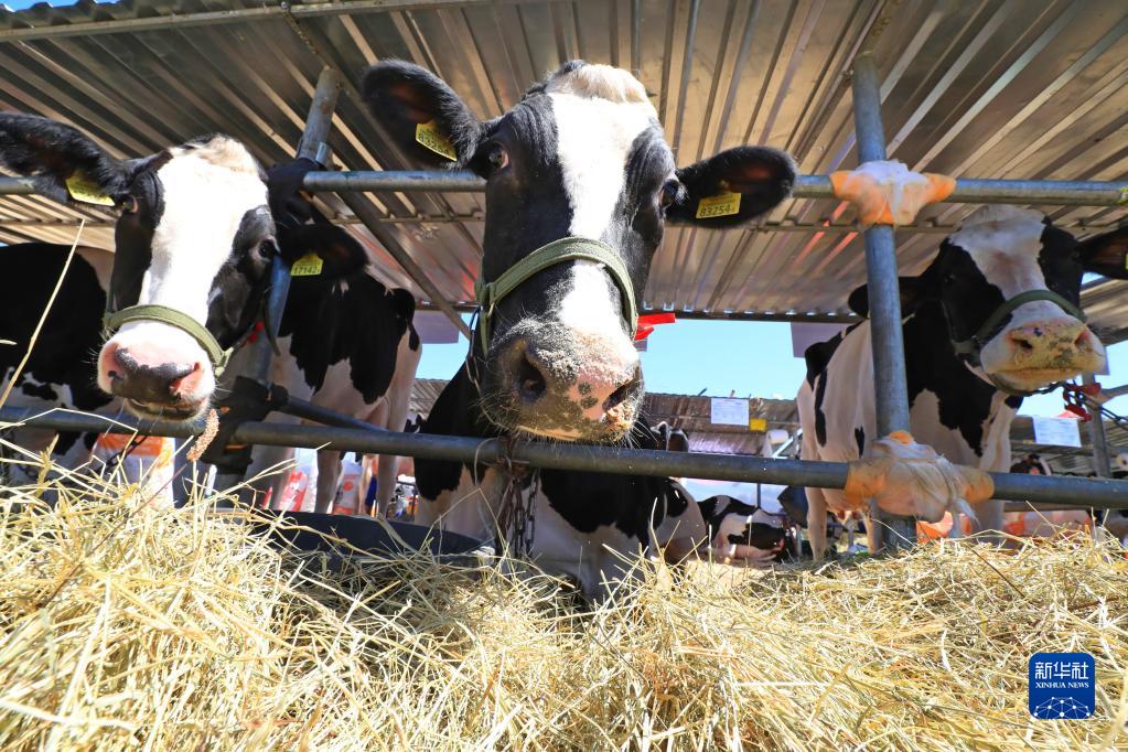 這是6月6日在白俄羅斯明斯克中白工業(yè)園拍攝的2023白俄羅斯國際農業(yè)展上的奶牛。