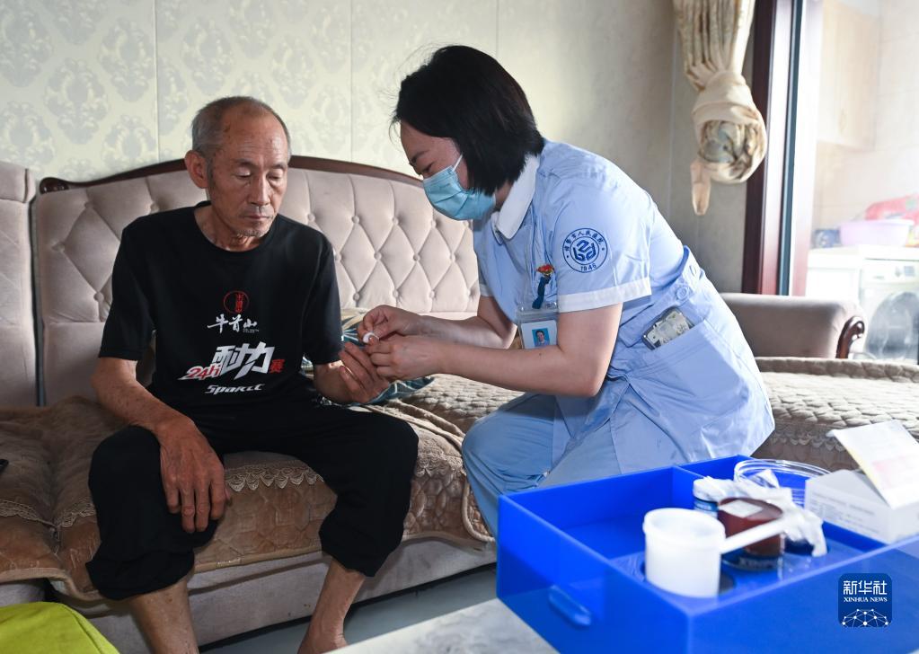 6月7日,諸暨市安華鎮衛生院醫務(wù)人員上門(mén)為居民服務(wù)。安華鎮群眾可通過(guò)“浙里護理”平臺網(wǎng)上預約,享受優(yōu)質(zhì)便利的上門(mén)護理服務(wù)。